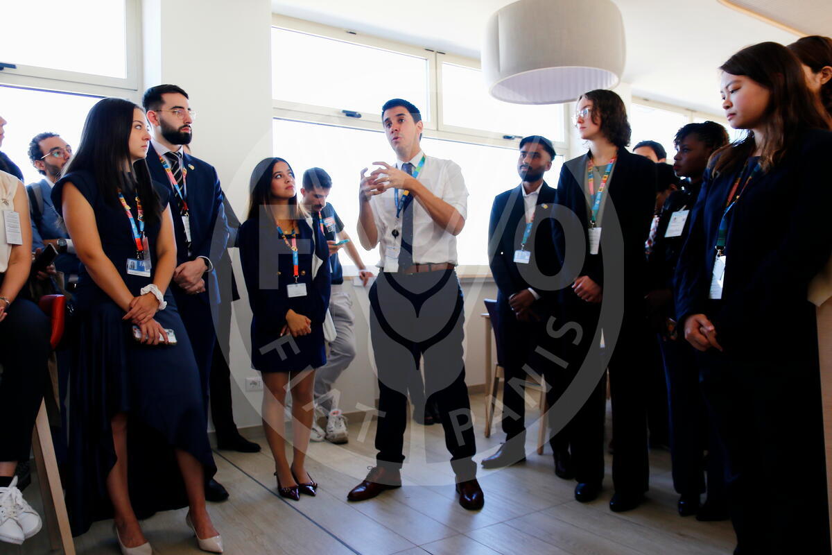 14 October 2024. Terrace, FAO Headquarters, Rome, Italy. Felipe Paullier, Assistant Secretary-General for Youth Affairs, joins the meet and greet on the eighth floor.