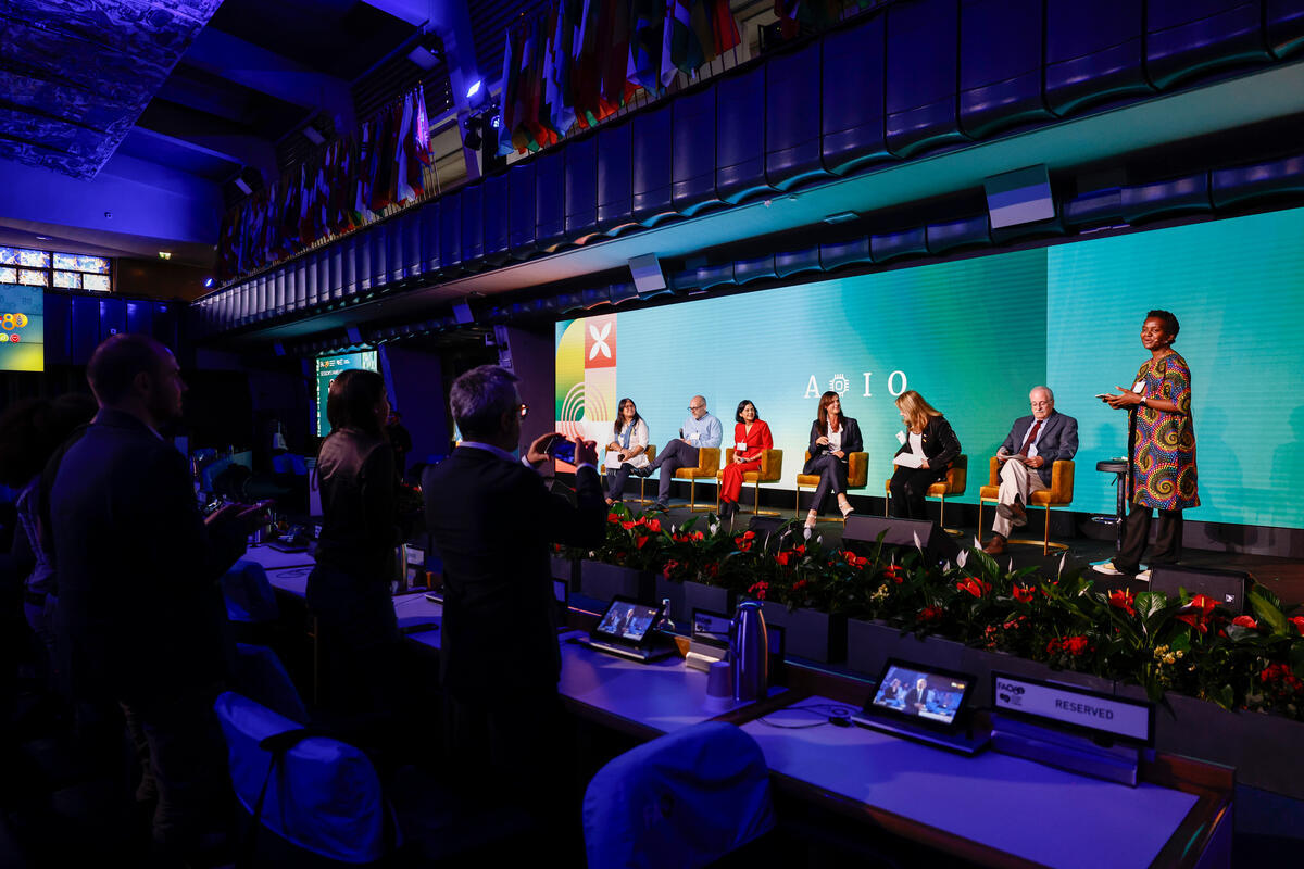 14 October 2025, Rome, Italy. Panel discussion during. the session, Science and Innovation Forum Driving technologies and innovations towards equitable agrifood systems transformation: launching of ATIO (OIN). World Food Forum (WFF) 2025. The fifth edition of the World Food Forum (WFF), the largest annual gathering of agrifood systems stakeholders globally, runs at FAO headquarters in Rome from 10 to 17 October 2025. FAO Headquarters (Plenary Hall).