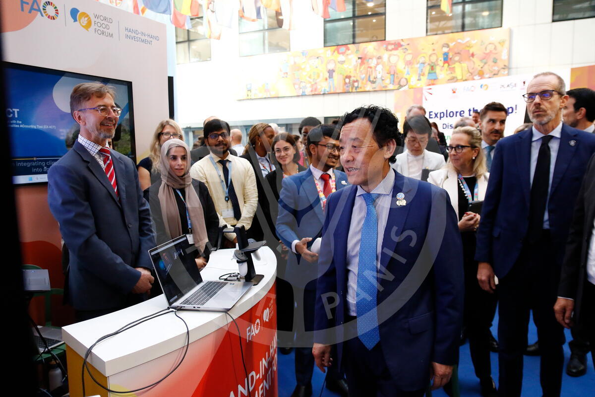 18 October 2024. Hand-In-Hand Investment, Atrium, FAO Headquarters, Rome, Italy. FAO Director-General QU Dongyu visits the World Food Forum Hand-In-Hand Investment Exhibition