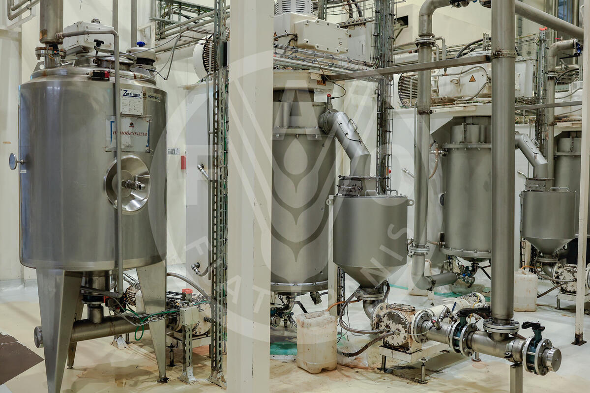 21 August 2025. NEO Industry SA, Kekem. Cocoa processing equipment and piping in the factory.