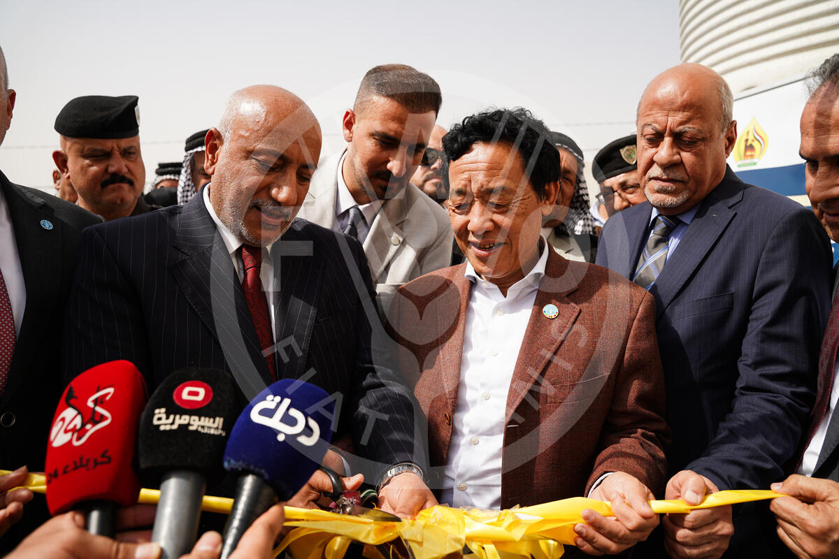 24 May 2025, Karbala, Iraq. FAO Director-General QU Dongyu (C) and Karbala Governor Nassif Jassim Al-Khattabi (C-L) inaugurate the Dairy center in Karbala.