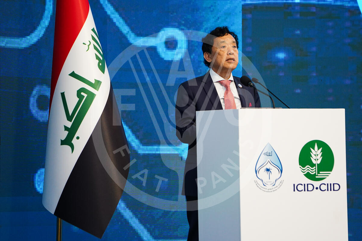 24 May 2025, Baghdad, Iraq. FAO Director-General QU Dongyu delivers his speech during the 5th Baghdad International Water Conference (BIWC).