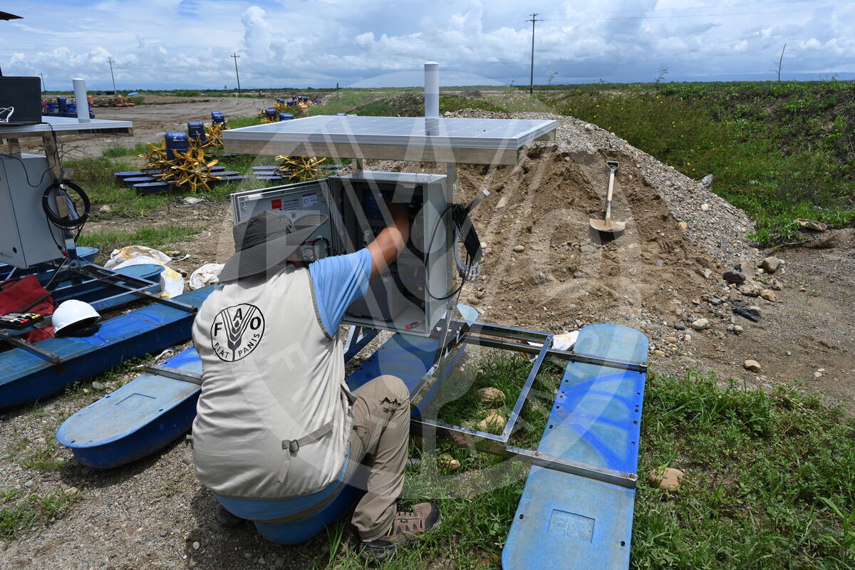 PERU, 2025. FAO field officer supports sensor and solar panel installation