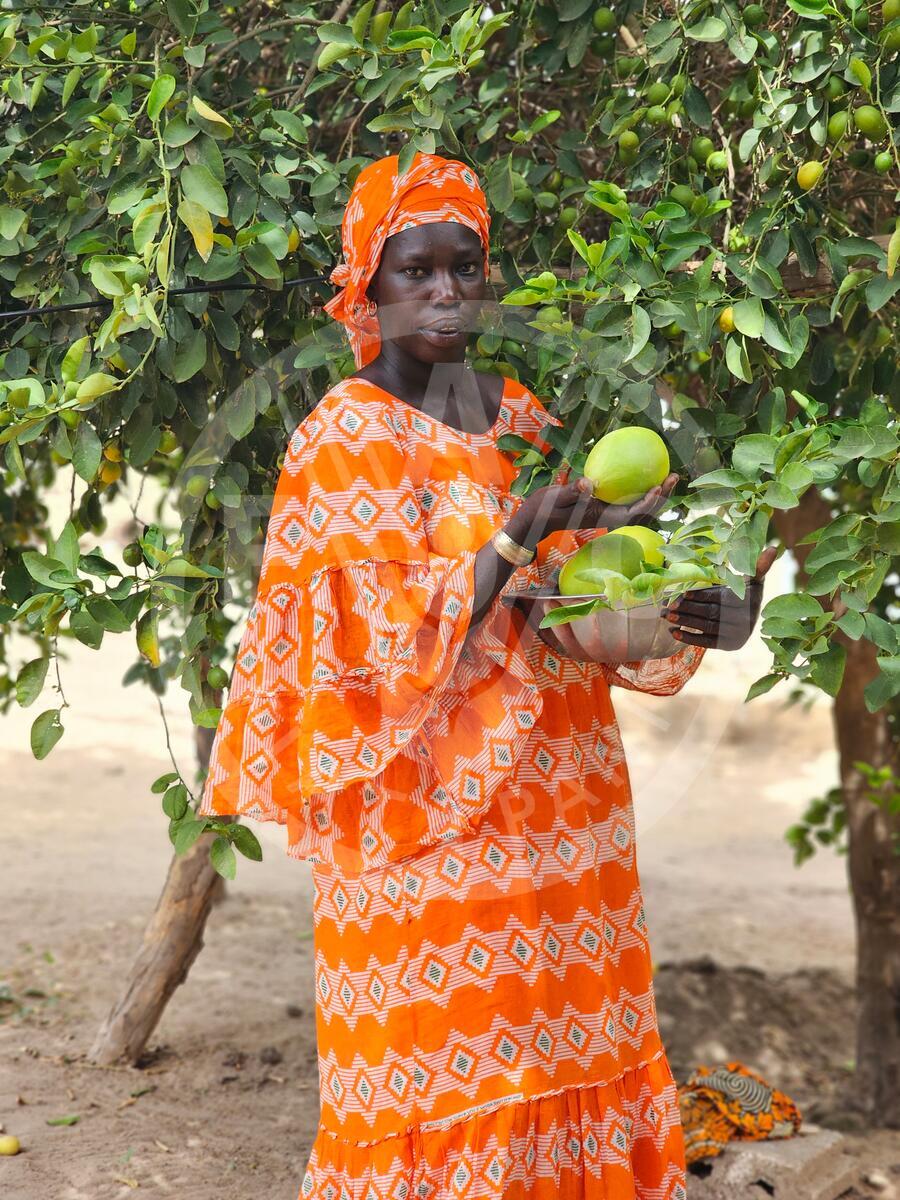 SENEGAL, 2025. A woman harvests lemons in the region of Thiès