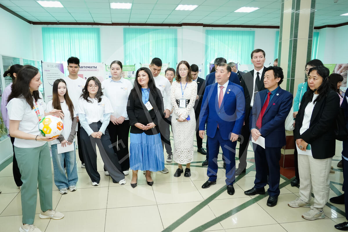 30 May 2025. Astana, Kazakhstan. FAO Director-General QU Dongyu and his delegation watched an interactive game led by Seifullin University students, titled "Catch the Ball - Tell Your Story!", in which students shared their reasons for choosing agriculture.
