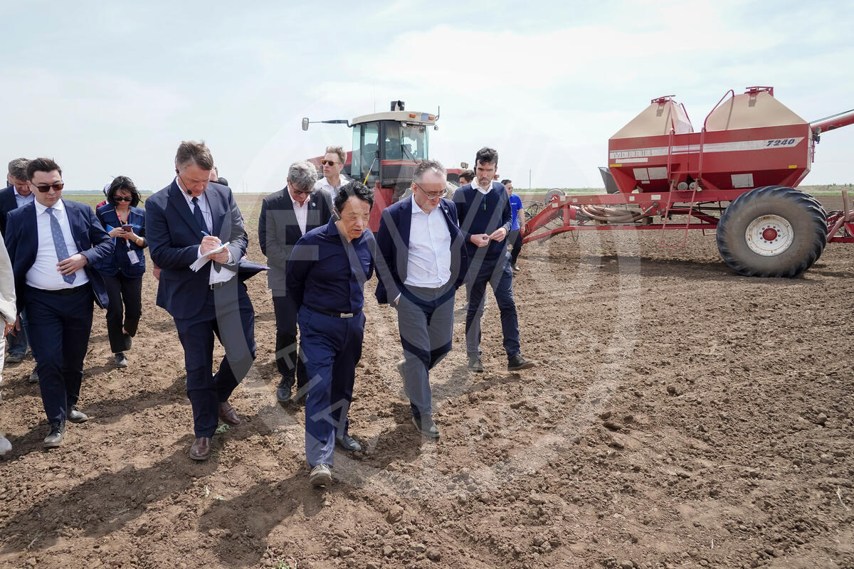 28 May 2025. Rodina Village (Akmola Region), Kazakhstan. FAO Director-General QU Dongyu and his delegation visits An exhibition of advanced agricultural machinery, during their field visit to “Rodina” agrofirm.