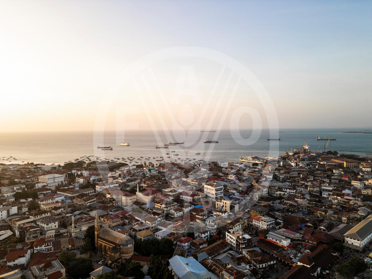 13 February 2025, Fujoni, Zanzibar, Tanzania. An aerial view of Zanzibar, showing its breathtaking coastline, lush landscapes, and diverse communities, reflecting the island’s rich natural beauty and agricultural heritage.