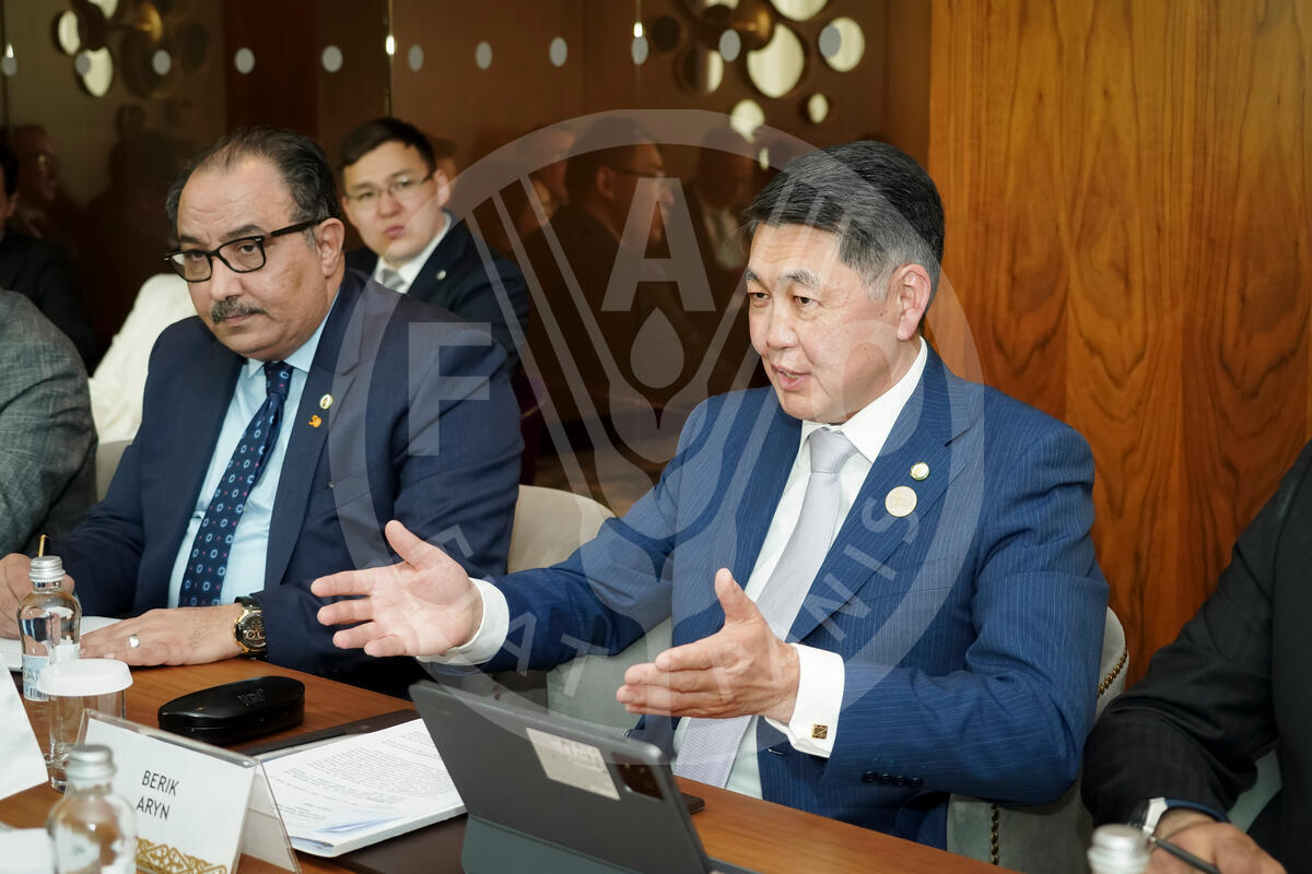 29 May 2025, Astana, Kazakhstan. FAO Director-General QU Dongyu meets with Ambassador Berik Aryn, (R) Director General of the Islamic Organization for Food Security