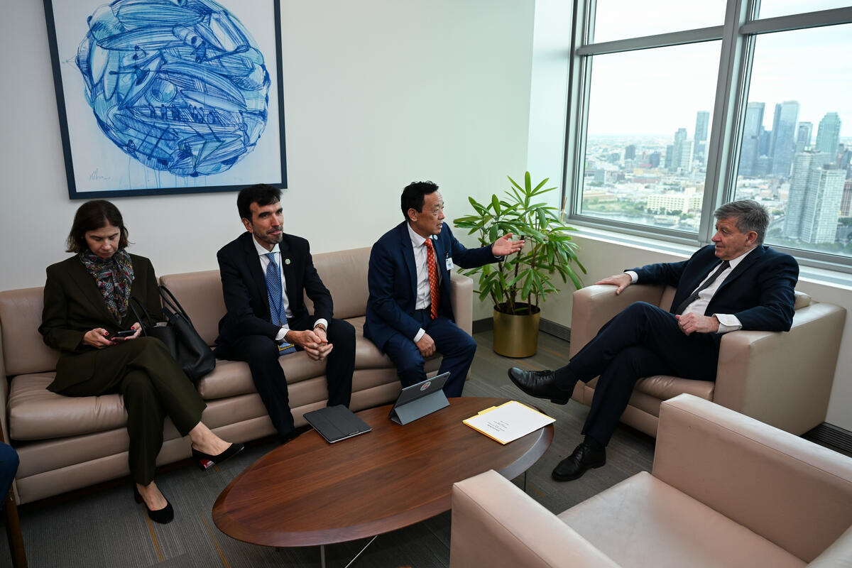 22 September 2025. New York City, USA. FAO Director-General QU Dongyu meets with Mr Guy Ryder, Under-Secretary-General for Policy, United Nations at the UN headquarters building in New York City, USA.