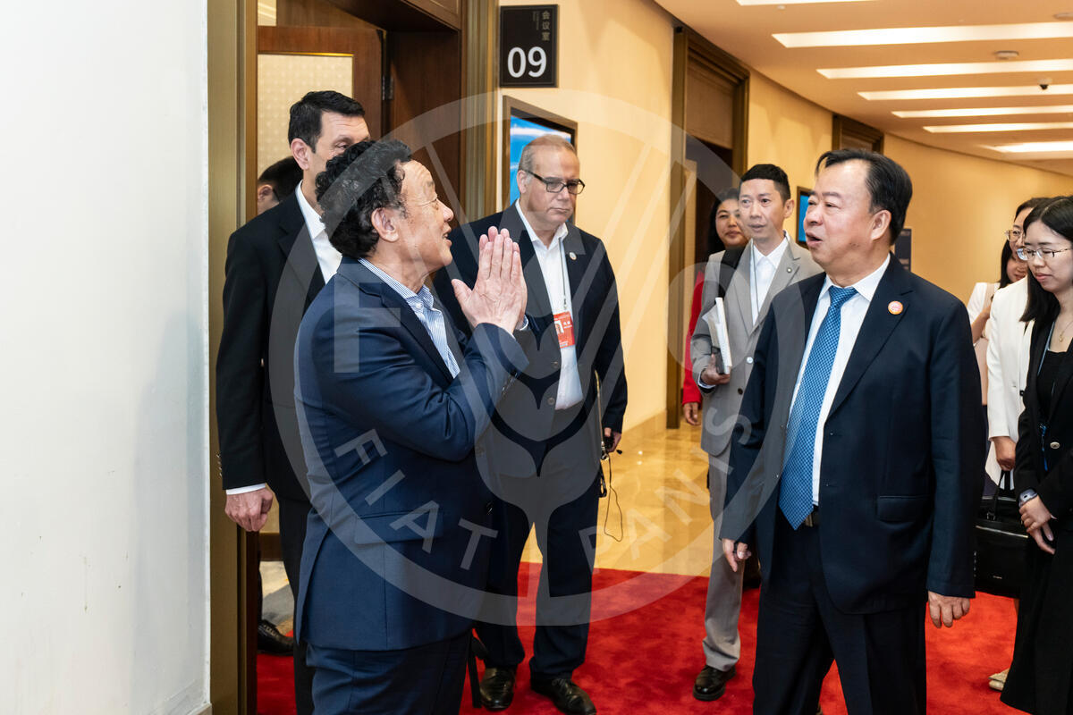 26 March 2026, Bo’ao, China. FAO Director-General QU Dongyu (L) speaks with Vice Chairman of China International Development Cooperation Agency ZHAO Fengtao after a bilateral meeting at the Bo’ao Forum for Asia 2025