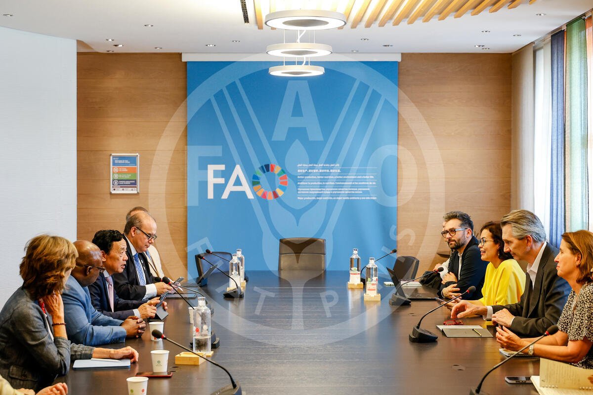 03 July 2025. Rome, Italy. FAO Director-General QU Dongyu meets CGIAR Executive Managing Director, Ismahane Elouafi. FAO headquarters, (Australia room).