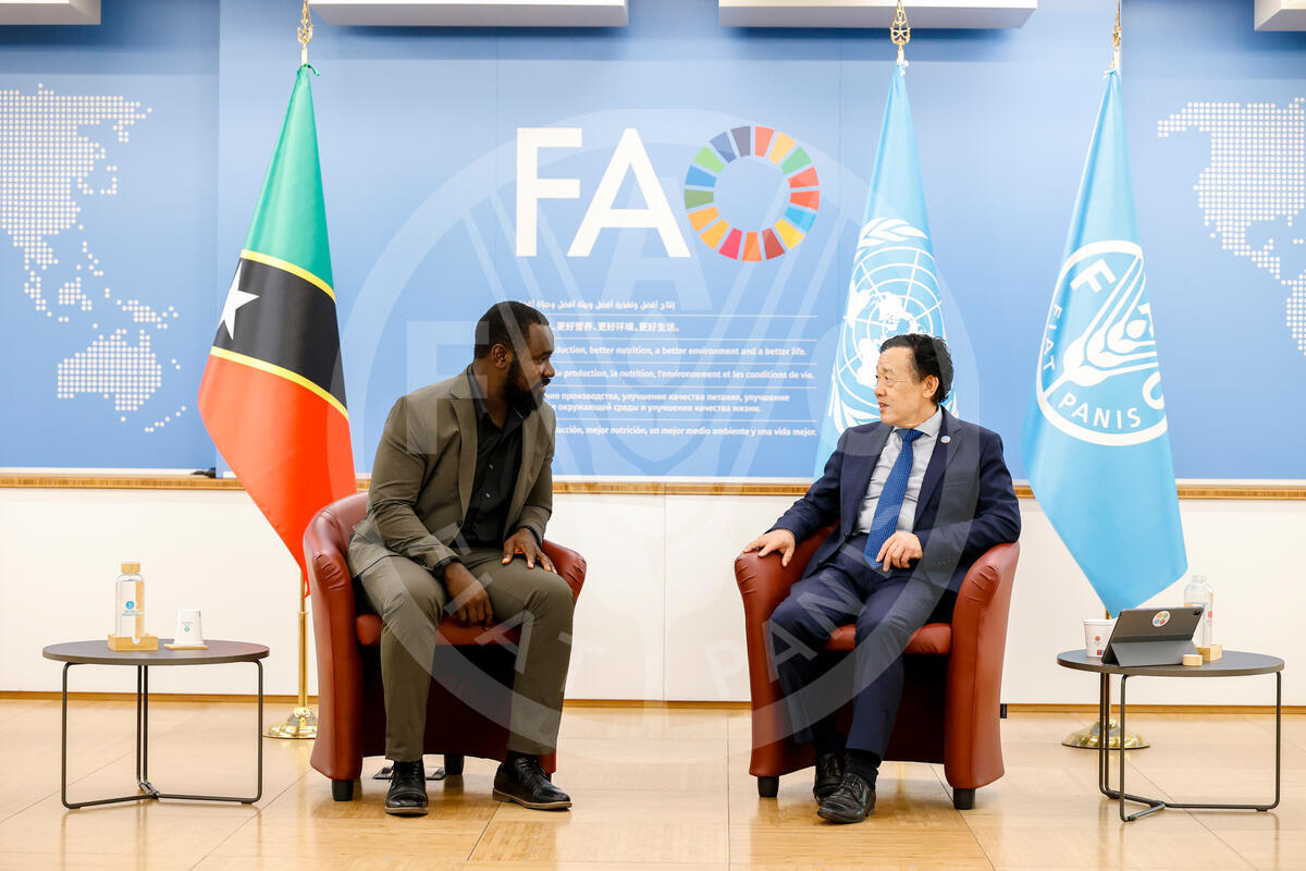 ITALY 2025. FAO DG meets with Saint Vincent & the Grenadines Minister for Agriculture, Forestry, Fisheries and Rural Transformation, Industry & Labour, Saboto Caesar