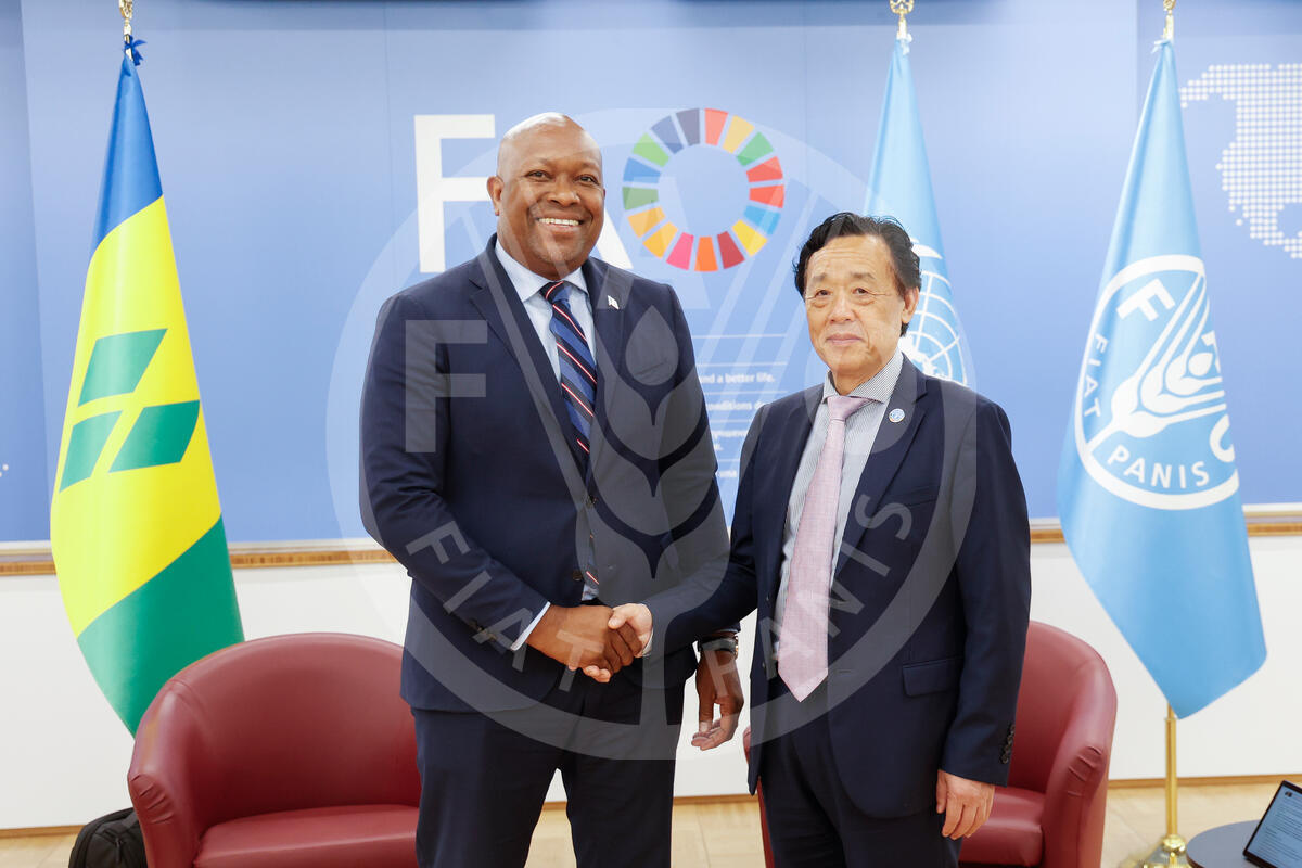 ITALY 2025. FAO DG meets with Saint Vincent & the Grenadines Minister for Agriculture, Forestry, Fisheries and Rural Transformation, Industry & Labour, Saboto Caesar