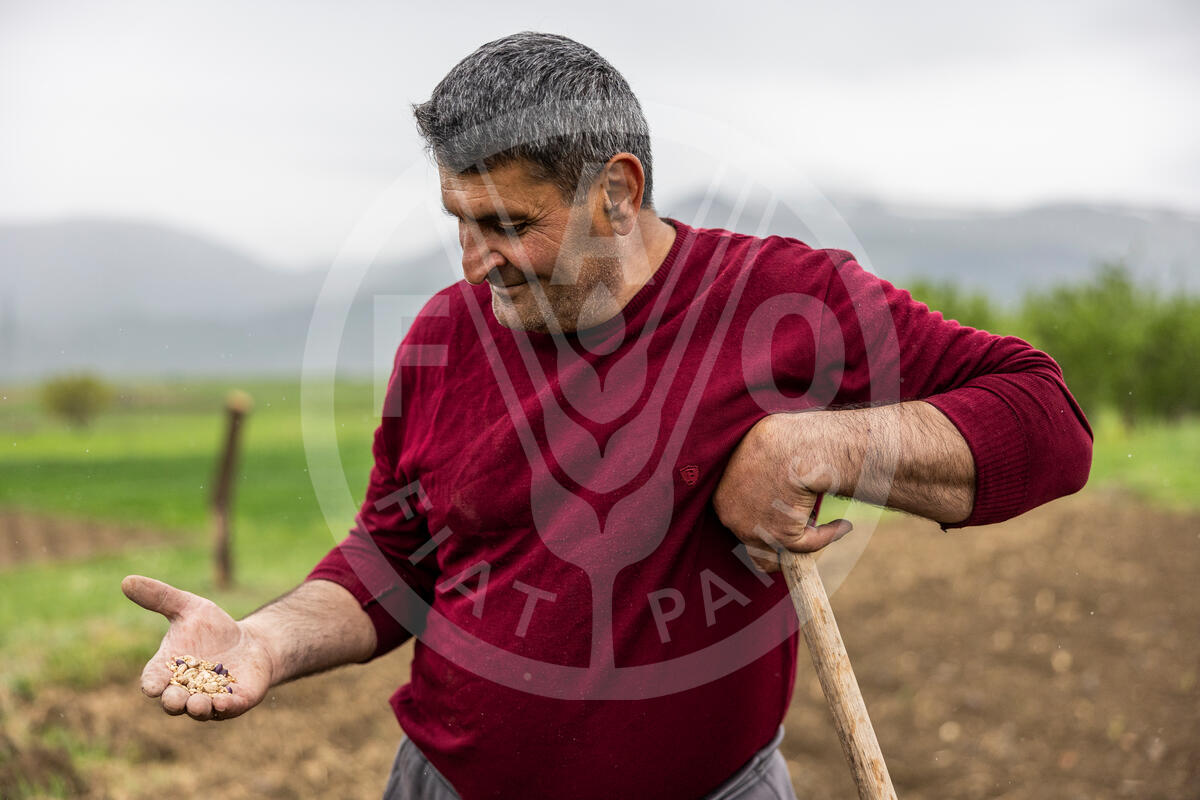 May 2025, Khizabavra, Georgia — Farmer Vaja Khutsishvili is supported by the Benefit-sharing Fund, the operational mechanism of the International Treaty on Plant Genetic Resources for Food and Agriculture (ITPGRFA), which facilitates international cooperation on plant genetic resources.