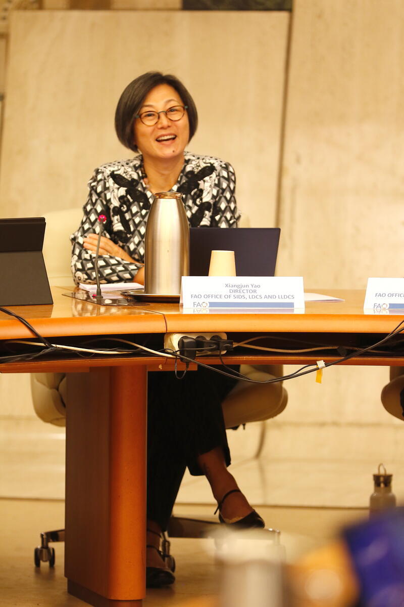 15 October 2025. FAO Headquarters, Rome, Italy. Ms. Xiangjun Yao, Director, Office of Small Island Developing States (SIDS), Least Developed Countries (LDCs) and Landlocked Developing Countries (LLDCs), FAO, intervenes during the session dedicated to the global launch of the Global Teach Ag Network Community at the World Food Forum (WFF) 2025.