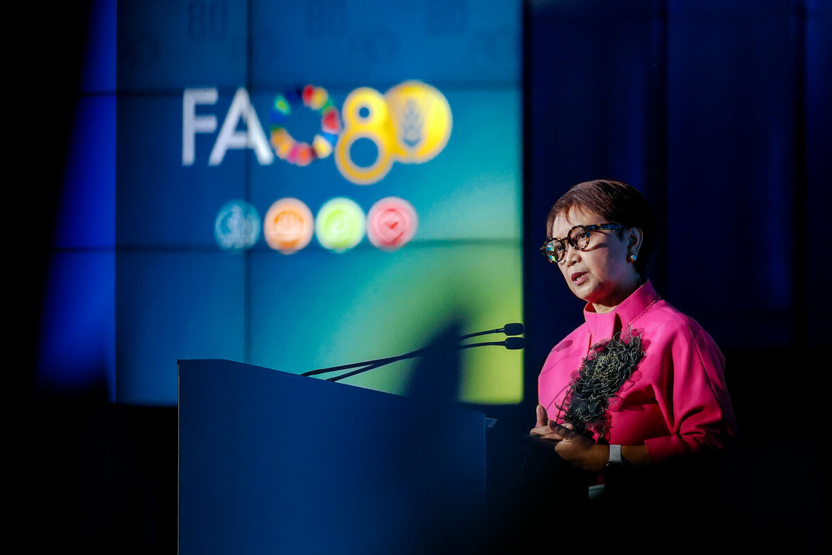 15 October 2025, Rome, Italy. Retno L.P. Marsudi, UN Secretary-General’s Special Envoy on Water speaks at the opening ceremony of the Rome Water Dialogue: High-Level Segment. The fifth edition of the World Food Forum (WFF), the largest annual gathering of agrifood systems stakeholders globally, runs at FAO headquarters in Rome from 10 to 17 October 2025. FAO Headquarters (Plenary Hall).