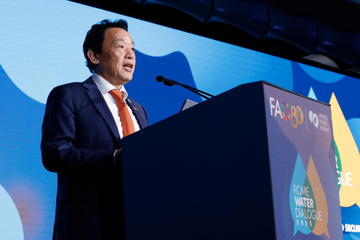 15 October 2025, Rome, Italy. FAO Director-General QU Dongyu delivers his opening remarks during the World Food Forum (WFF) 2025. The fifth edition of the World Food Forum (WFF), the largest annual gathering of agrifood systems stakeholders globally, runs at FAO headquarters in Rome from 10 to 17 October 2025. FAO Headquarters, (Plenary Hall).