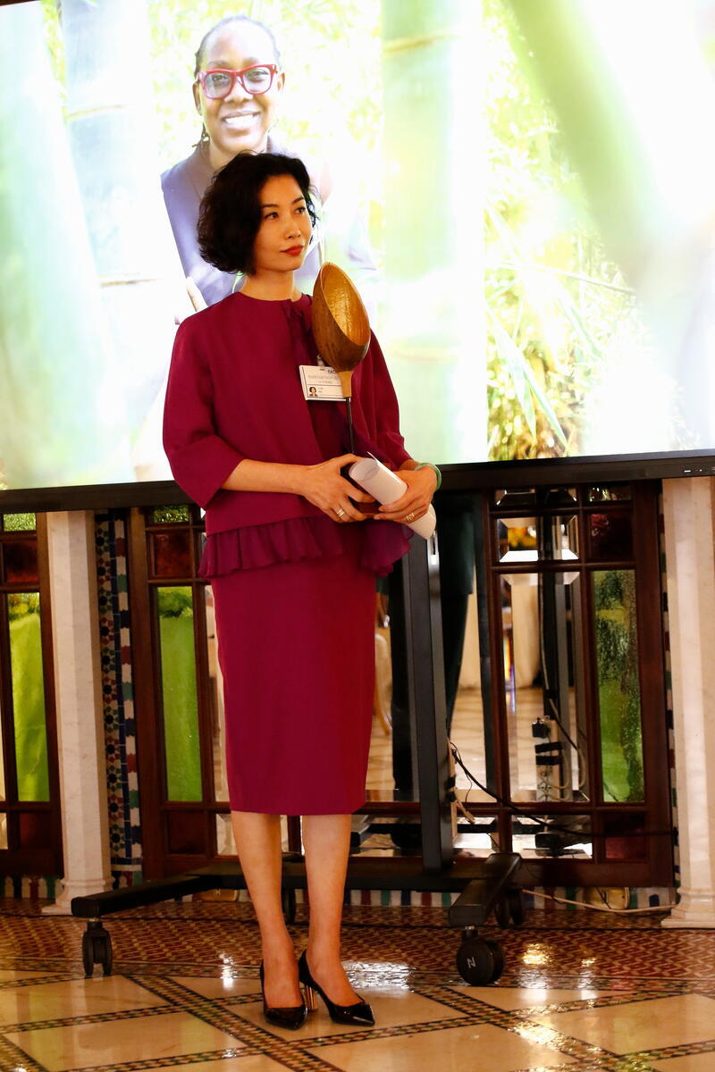 Lan Li, Director External Relations and Partnership INBAR, accepts the award for Bamboo-based restoration during Awarding UN Decade on Ecosystem Restoration World Restoration Flagships Ceremony.