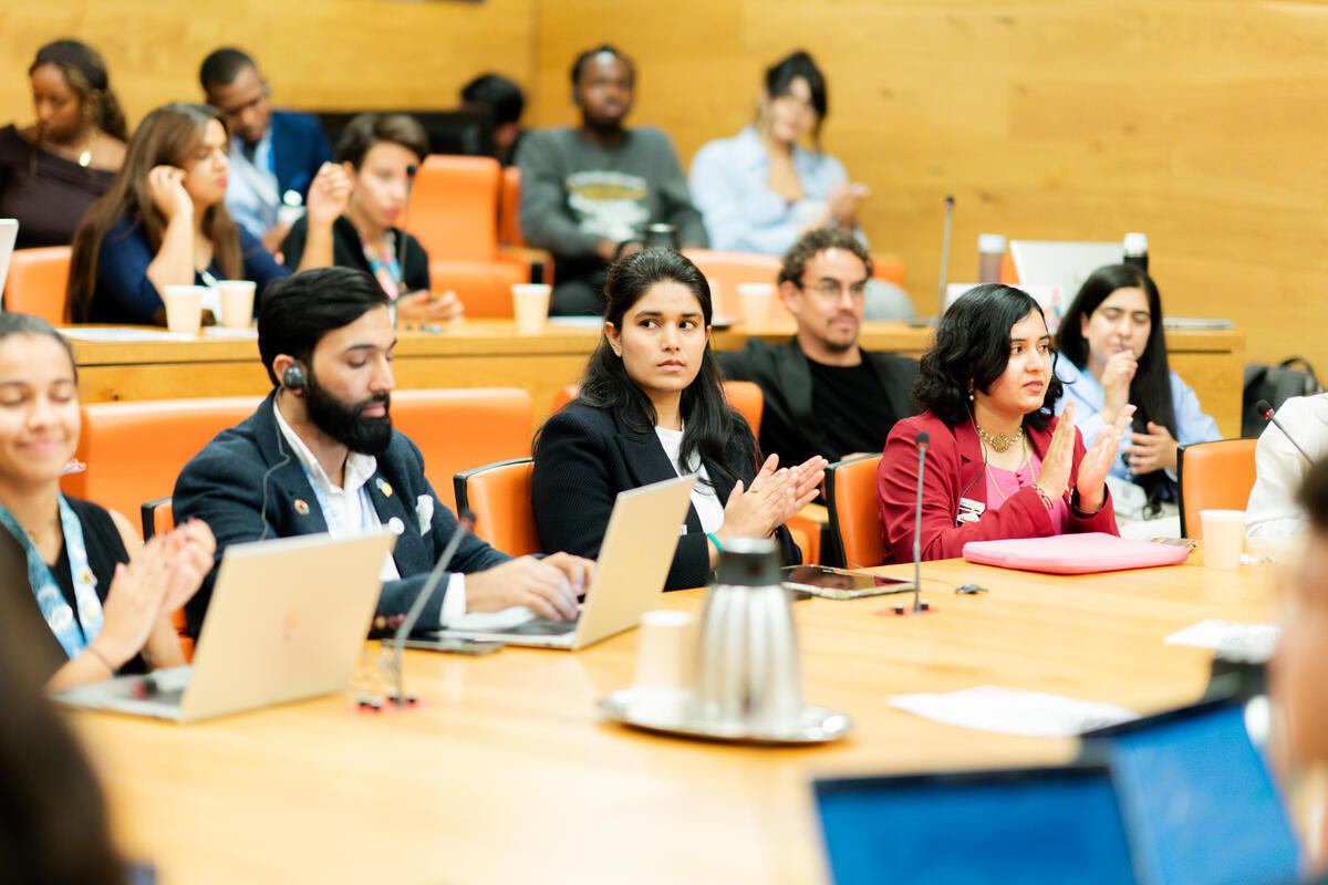 15 October 2025. FAO Headquarters, Rome, Italy. Participants engage in discussions during the Youth Assembly Session – Young Parliamentarians Roundtable, World Food Forum 2025.