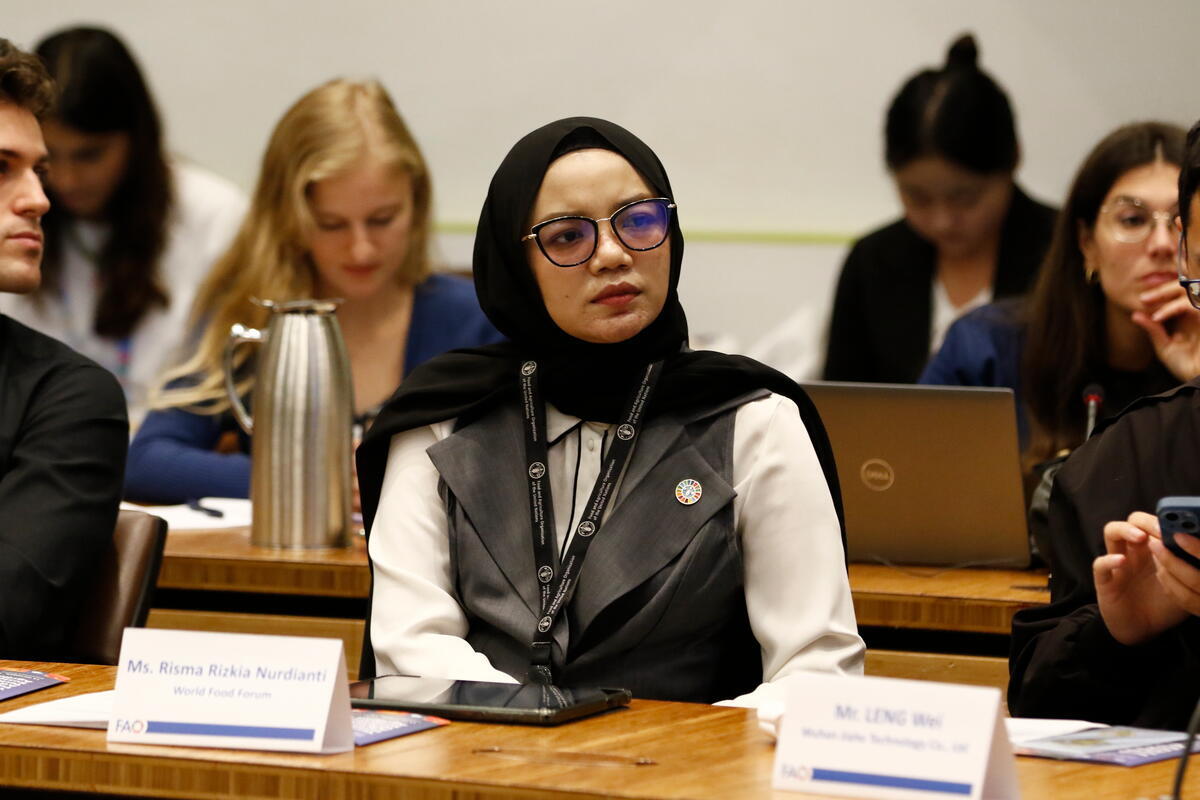 15 October 2025, FAO Rome Headquarters, Italy. Risma Rizkia Nurdianti, Doctor in Agricultural Sciences - Animal Nutrition | Head of Science and Innovation of World Food Forum Indonesia Chapter attends the session Youth at the Forefront: Advancing Technology for Sustainable Agrifood Systems in the Philippines Room during WFF 2025.