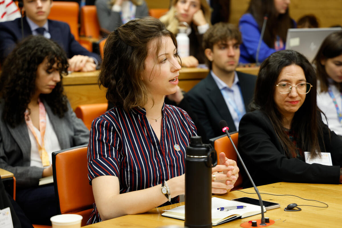 15 October 2025. FAO Headquarters, Rome, Italy. Amy McMackin, Academic Delegate from ETH Zurich, speaks at the Europe and Central Asia Roundtable of the Youth Assembly during the World Food Forum 2025.
