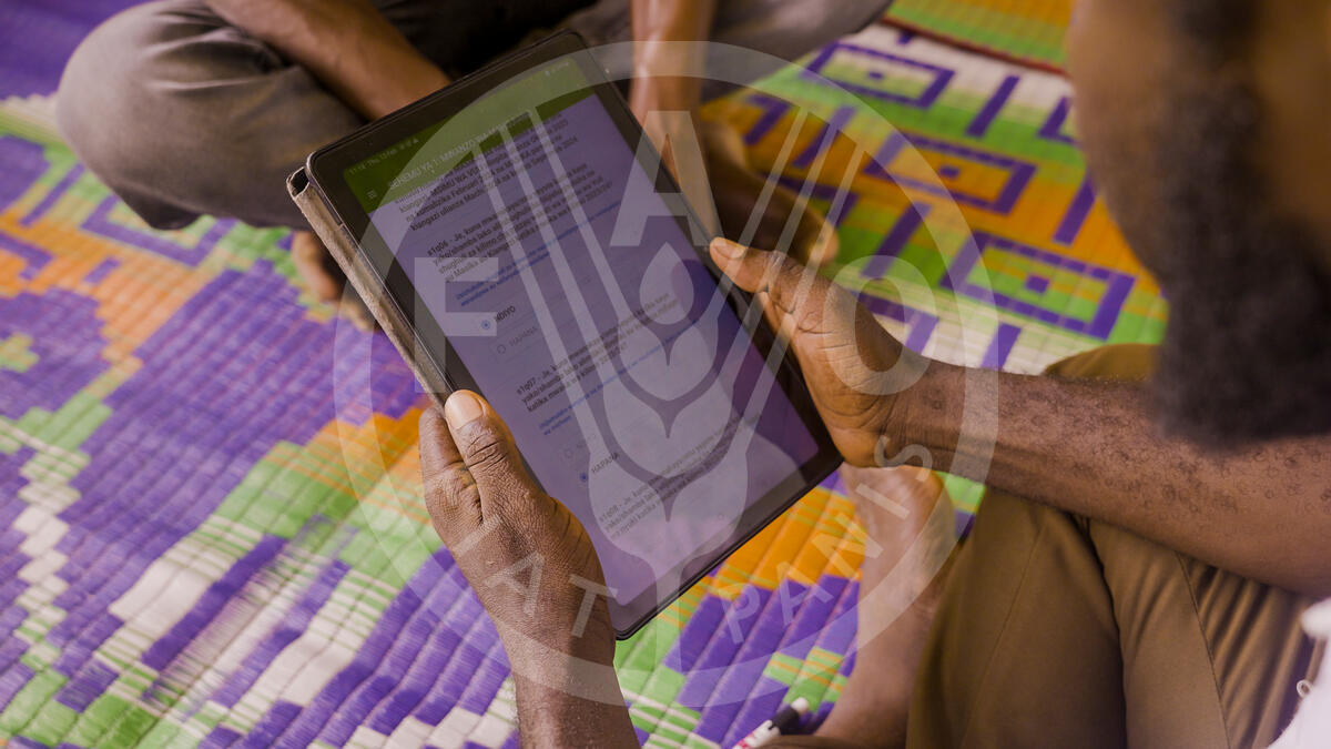 19 February 2025, Fujoni, Zanzibar, Tanzania.A tablet is used for data collection improves accuracy and efficiency, ensuring reliable information on women’s empowerment and nutrition through the WEN data collection process.