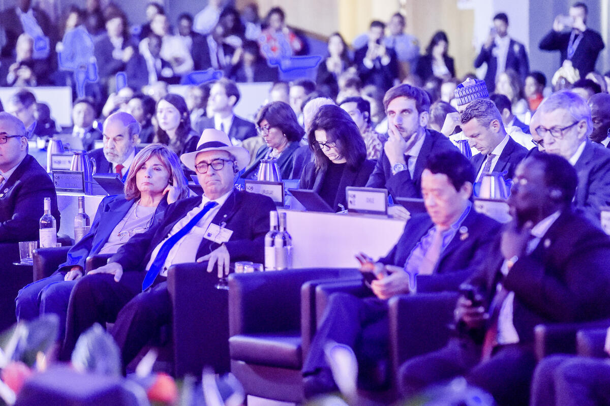 14 October, 2025. FAO Headquarters, Rome, Italy. Speakers seated in the front row during the official opening ceremony of the Hand-in-Hand Initiative Investment Forum at the 2025 World Food Forum. FAO Director-General QU Dongyu is pictured second from the right.