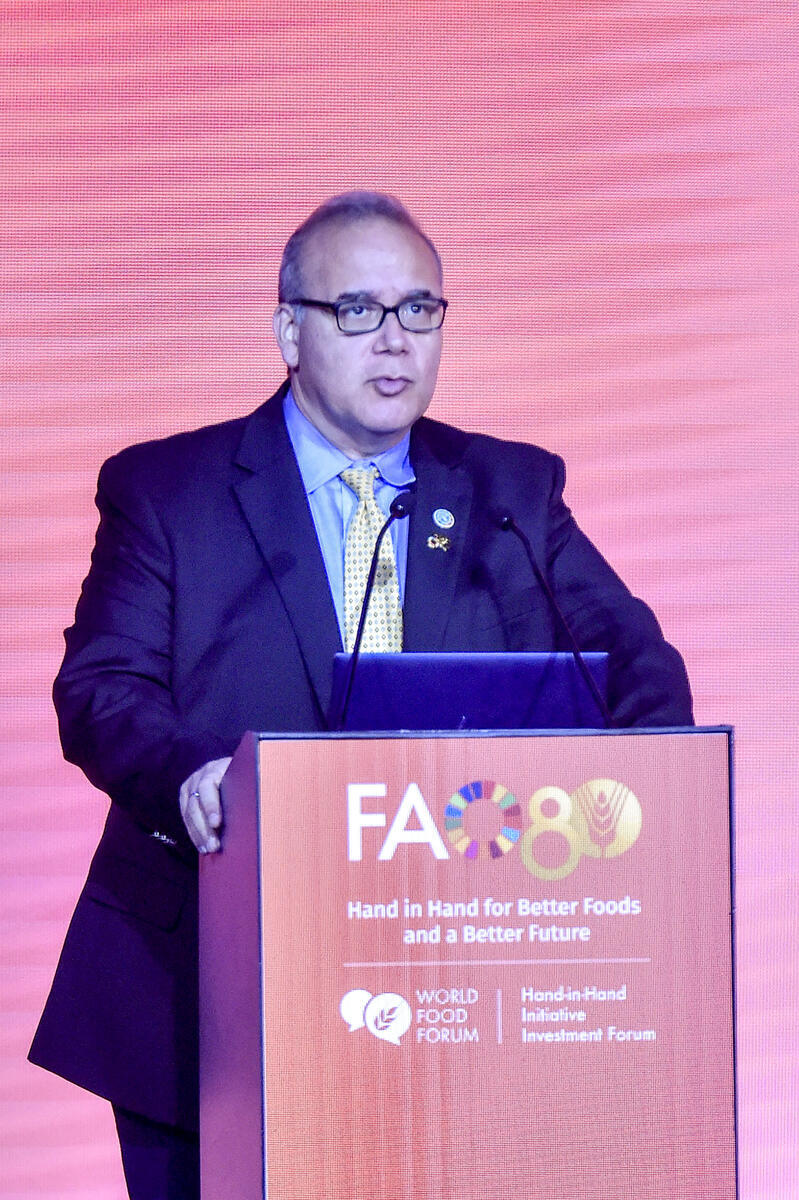 14 October 2025. FAO Headquarters, Rome, Italy. Máximo Torero, FAO Chief Economist, inaugurates and moderates the first panel, “Investing in Success”, of the official Opening Ceremony at the Hand-in-Hand Initiative Investment Forum during the 2025 World Food Forum.