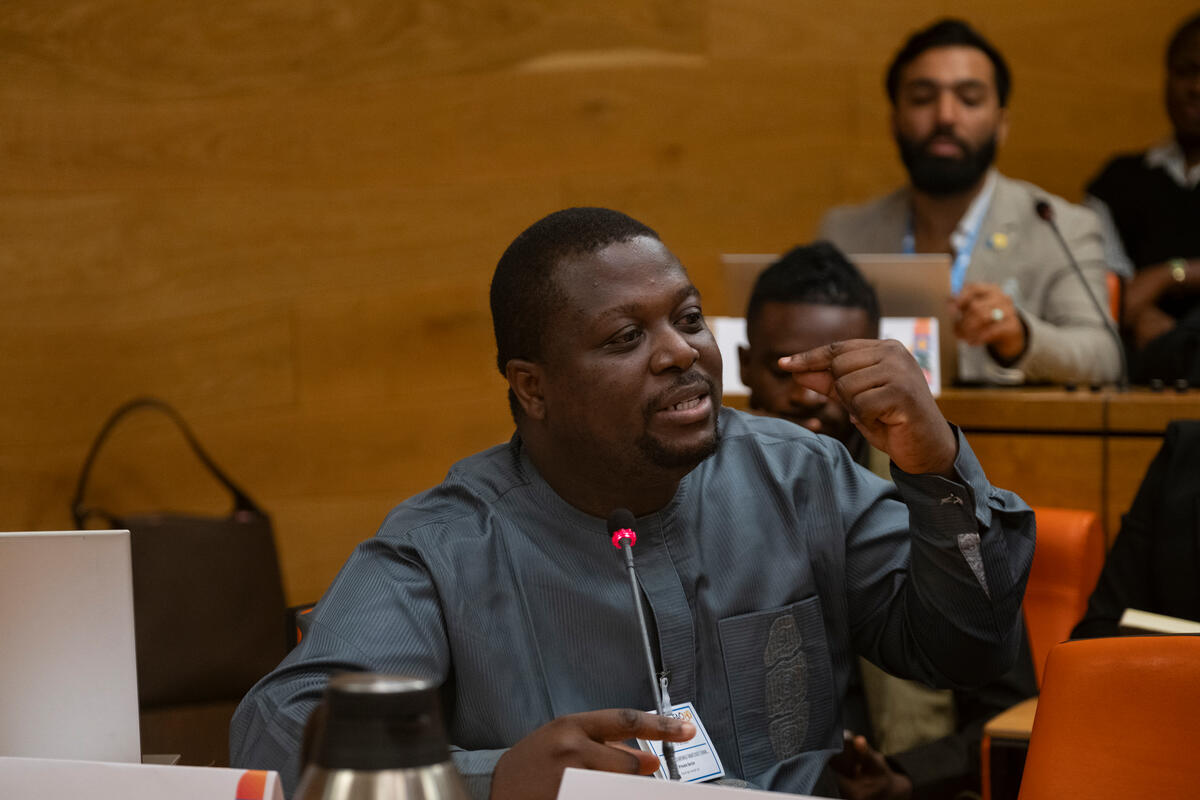 14 October 2025. FAO Headquarters, Rome, Italy. Babatunde Emmanuel Olarewaju (Young Farmer from Nigeria) delivers his address during the Youth Assembly Session: Africa Roundtable.