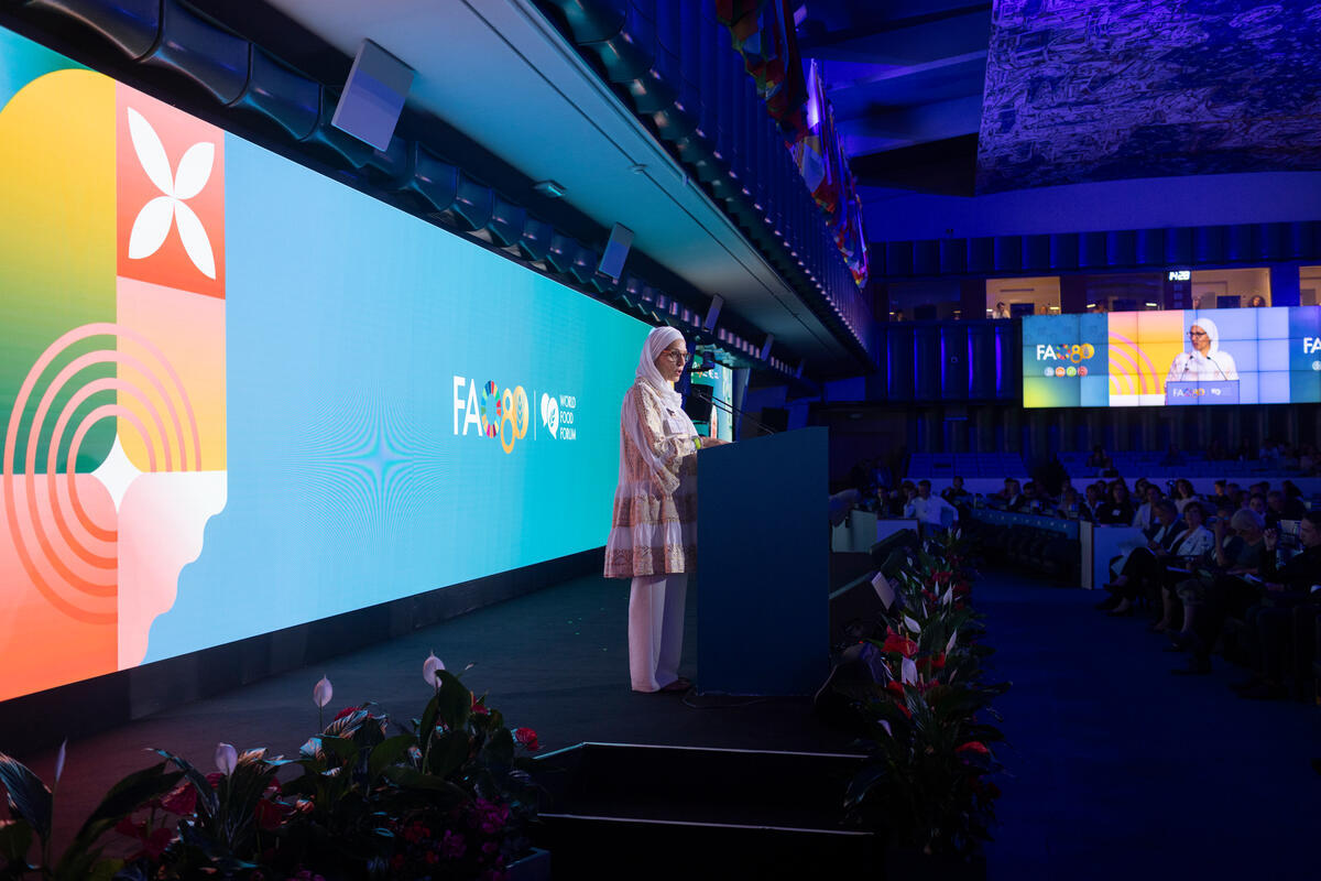 14 October 2025, Rome, Italy. Her Royal Highness Princess Basma bint Ali delivers her address during the Science and Innovation Forum High-level Opening. World Food Forum (WFF) 2025. The fifth edition of the World Food Forum (WFF), the largest annual gathering of agrifood systems stakeholders globally, runs at FAO headquarters in Rome from 10 to 17 October 2025. FAO Headquarters (Plenary Hall).