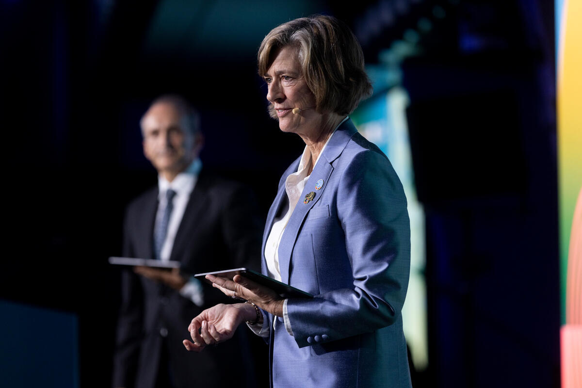14 October 2025, Rome, Italy. Beth Crawford, FAO Chief Scientist (ad interim) and Assistant Director-General, moderates the Science and Innovation Forum High-level Opening. World Food Forum (WFF) 2025.