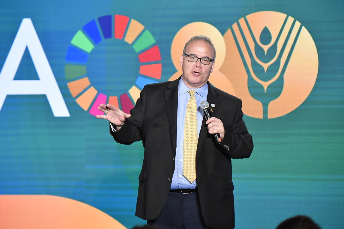 14 October 2025. FAO Headquarters, Rome, Italy. Máximo Torero, FAO Chief Economist delivers his address during the Transformative Research Challenge Finals.