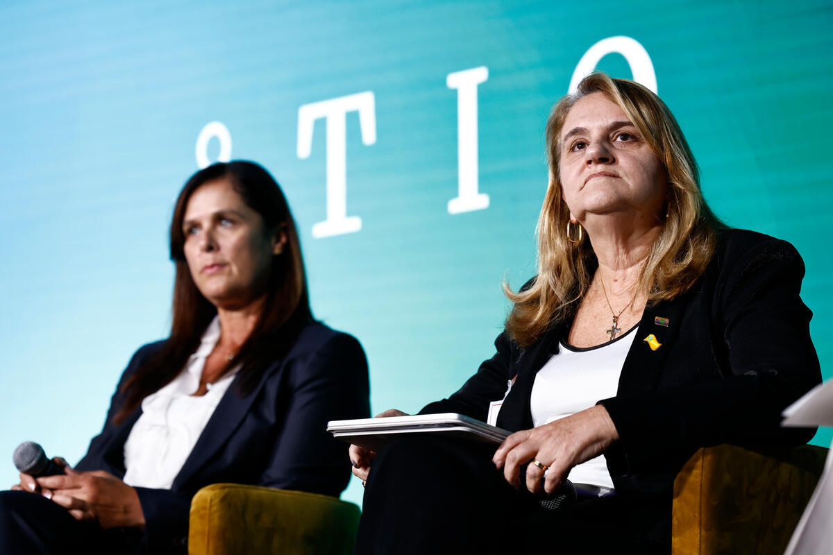 14 October 2025, Rome, Italy. Silvia Maria Fonseca Silveira Massruha (R), President of Embrapa (Brazilian Agricultural Research Corporation) and Elzandi Oosthuizen (L) Bayer Crop Science’s Senior Vice President, Head of Enterprise Corn Product