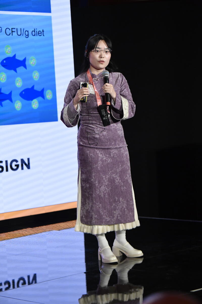 14 October 2025. FAO Headquarters, Rome, Italy. Huan Han, co-founder of Biobalance Team presents her project during the Transformative Research Challenge Finals.