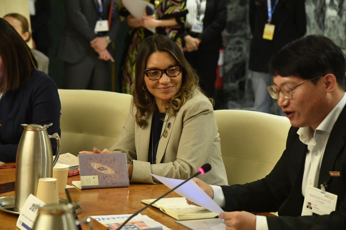 14 October 2025. FAO Headquarters, Rome, Italy. First Lady of Brazil, Rosângela Lula da Silva (C) and Chairman of IOG and Co-founder of IONG China, Jian Ye (R) at the session “Empowering Farmers & SMEs Against Climate Shocks”, World Food Forum 2025.