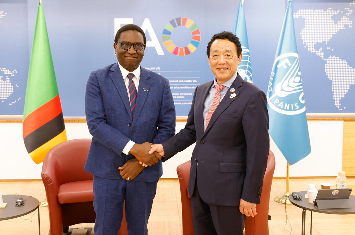 ITALY 2025 - FAO Director-General QU Dongyu meeting Zambia Minister for Livestock and Fisheries, Peter Kapala.