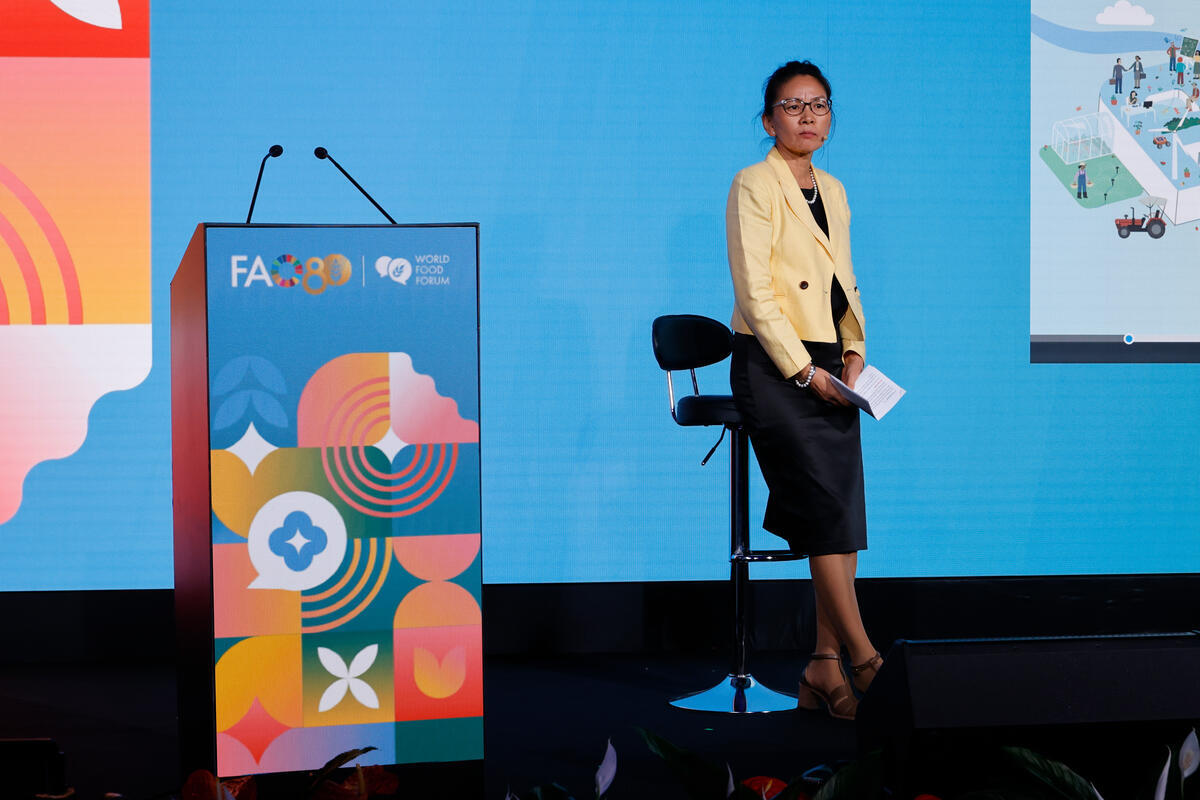 14 October 2025, Rome, Italy. Panel Moderator, Delgermaa Chuluunbaatar,Agricultural Research Officer, FAO, stands during the Science and Innovation Forum Driving technologies and innovations towards equitable agrifood systems transformation: launching of ATIO (OIN). World Food Forum (WFF) 2025. The fifth edition of the World Food Forum (WFF), the largest annual gathering of agrifood systems stakeholders globally, runs at FAO headquarters in Rome from 10 to 17 October 2025. FAO Headquarters (Plenary Hall).