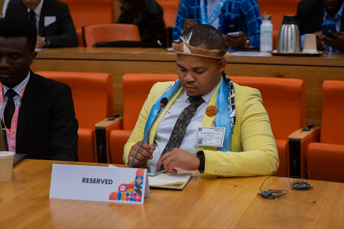14 October 2025. FAO Heaquarters, Rome, Italy. Samuel Stanley (Global Youth Indigenous Caucus, Botswana) attends the Youth Assembly Session: Africa roundtable
