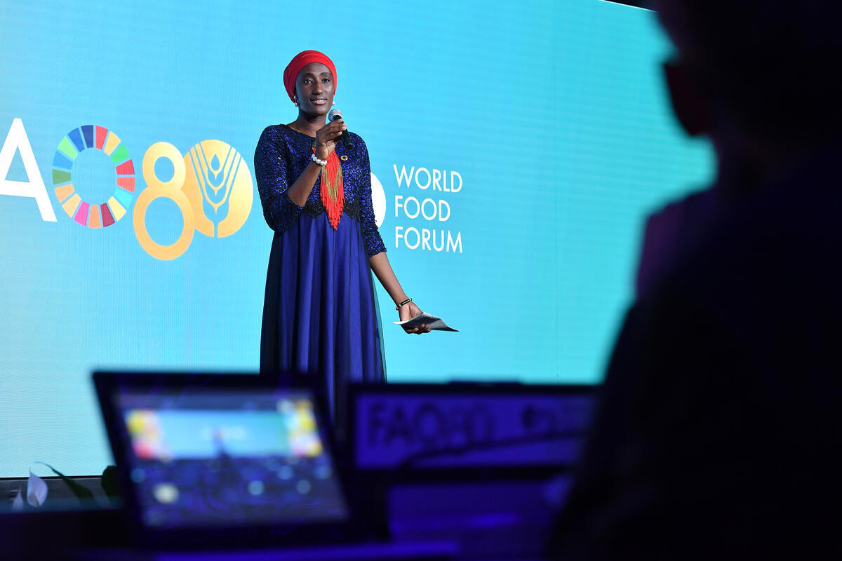 14 October 2025. FAO Headquarters, Rome, Italy. Rokiatou Traoré, Founder and Executive Manager of Herou Alliance, delivers her address during the High-Level Opening of the Science and Innovation Forum at the World Food Forum 2025.