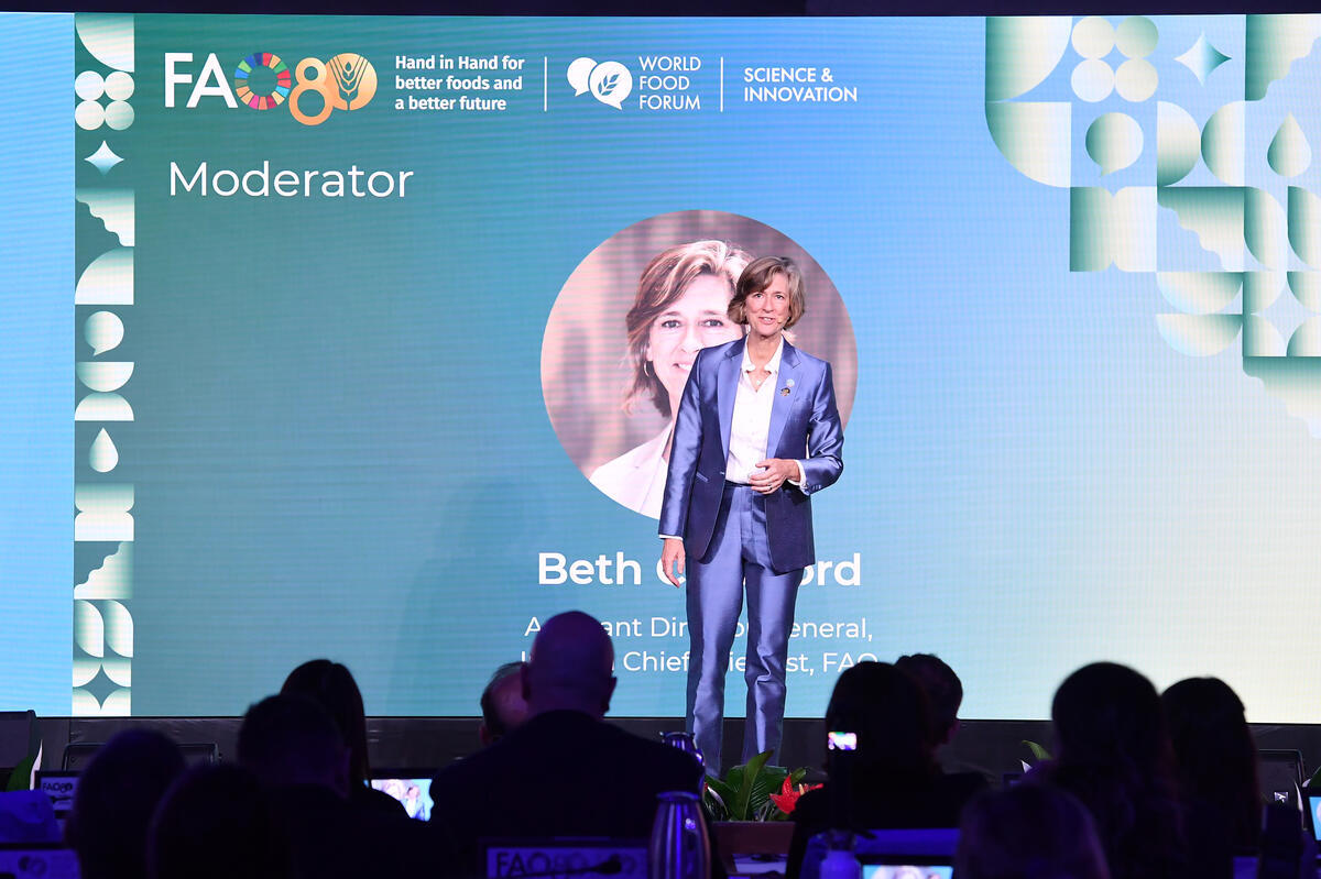 14 October 2025. Fao Headquarters, Rome, Italy. 14 October 2025. Fao Headquarters, Rome, Italy. Beth Crawford, FAO Chief Scientist (ad interim) and Assistant Director-General, moderates the Science And Innovation Forum High Level Opening moderate Science And Innovation Forum High Level Opening.