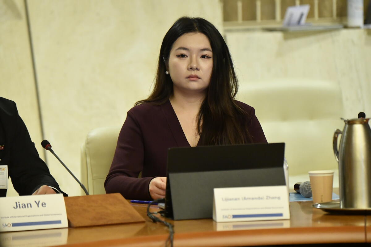 14 October 2025. FAO Headquarters, Rome, Italy. Board Member of the Institute of International Organizations and Global Governance, Lijianan Zhang moderates the session “Empowering Farmers & SMEs Against Climate Shocks”, World Food Forum 2025.