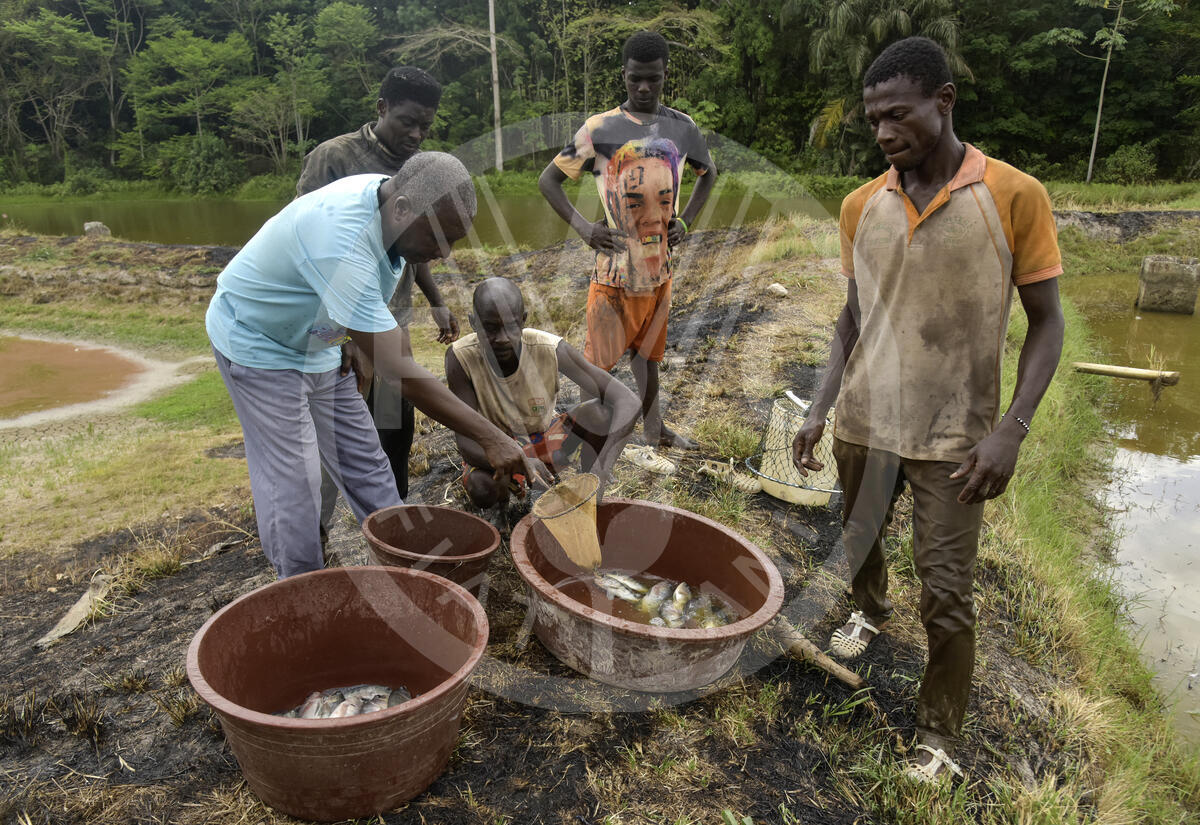CÔTE D’IVOIRE 2025. Fish farmers collect tilapia breeders
