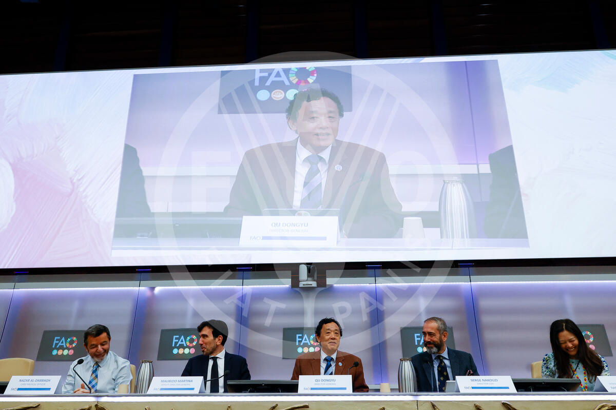 15 February 2025. Rome, Italy. FAO Director-General QU Dongyu delivers his address during the Opening Ceremony of the FAO Wellbeing Awareness Event 2025. FAO headquarters, (Sheikh Zayed Centre).