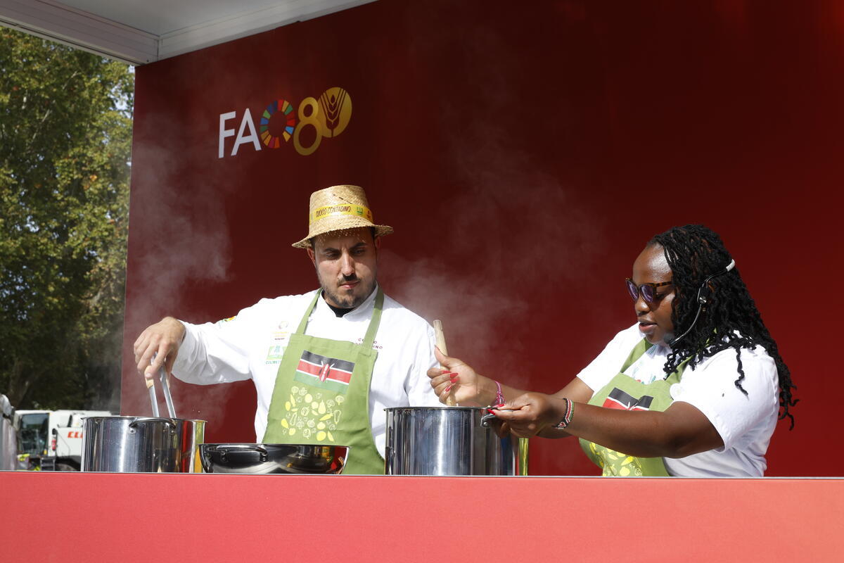 12 October 2025, Rome, Italy. Ugali & Sukuma Wiki led by Chefs Jedidah Wambui Nderitu & Francesco Soldati, World Farmers Markets Coalition. FAO Global Exhibition: From Seeds to Foods. (Porta Capena Park). World Food Forum (WFF) 2025. The fifth edition of the World Food Forum (WFF), the largest annual gathering of agrifood systems stakeholders globally, runs at FAO headquarters in Rome from 10 to 17 October 2025.