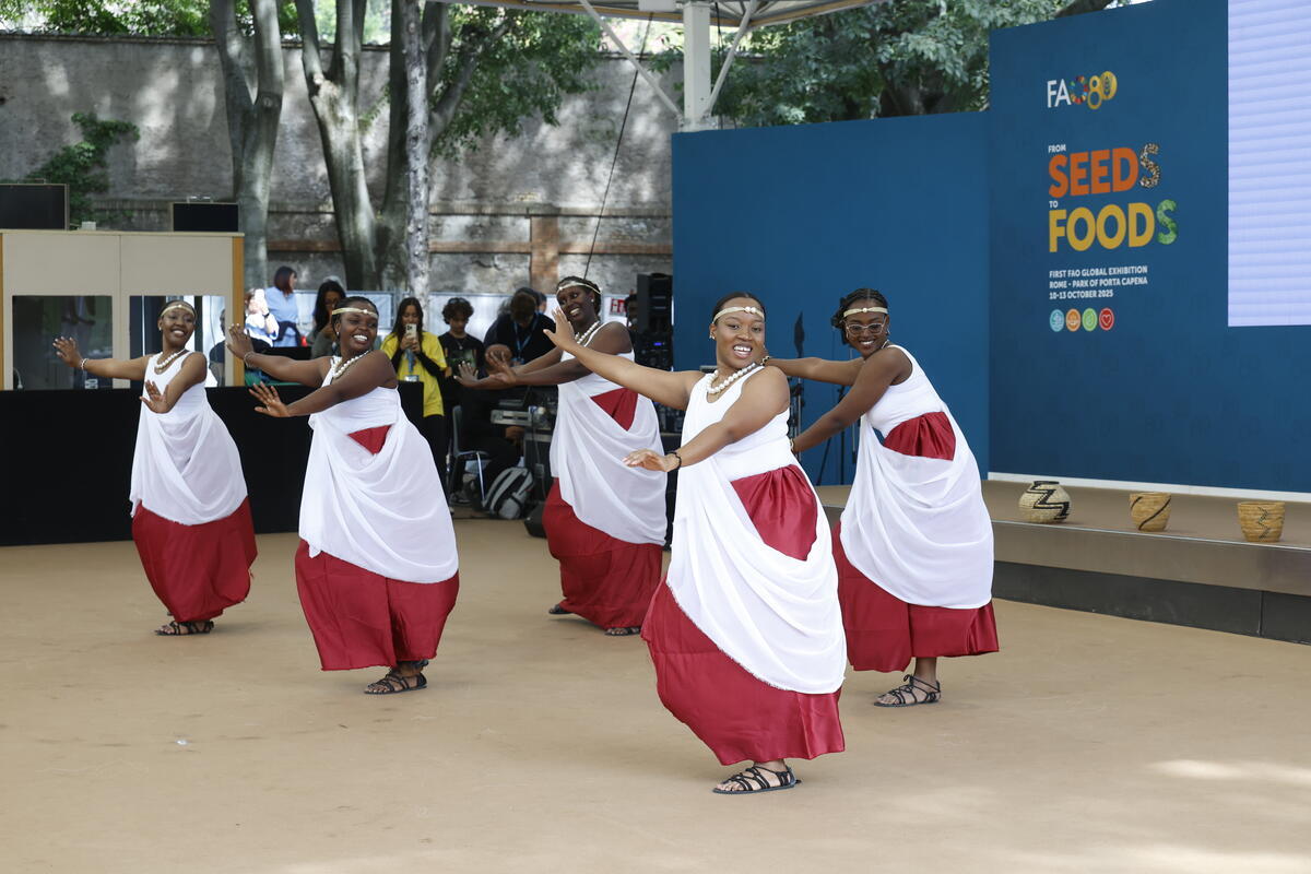 12 October 2025, Rome, Italy. Performance by the Inganjī Cultural Troupe A cultural showcase of music and dance. Performers from Rwanda bring heritage and storytelling together in a colorful, immersive experience. FAO Global Exhibition: From Seeds to Foods. (Porta Capena Park). World Food Forum (WFF) 2025. The fifth edition of the World Food Forum (WFF), the largest annual gathering of agrifood systems stakeholders globally, runs at FAO headquarters in Rome from 10 to 17 October 2025.