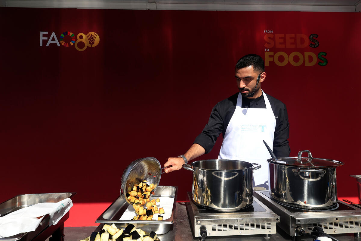 10 October 2025, Rome, Italy. Cooking show with Ammar Albarakati. FAO Global Exhibition: From Seeds to Foods. (Porta Capena Park). World Food Forum (WFF) 2025. The fifth edition of the World Food Forum (WFF), the largest annual gathering of agrifood systems stakeholders globally, runs at FAO headquarters in Rome from 10 to 17 October 2025.