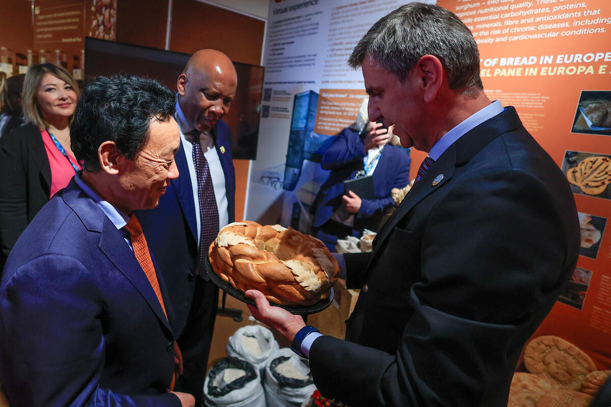 10 October 2025, Rome, Italy. FAO Director-General QU Dongyu visits the FAO Global Exhibition: From Seeds to Foods. (Porta Capena Park). World Food Forum (WFF) 2025. The fifth edition of the World Food Forum (WFF), the largest annual gathering of agrifood systems stakeholders globally, runs at FAO headquarters in Rome from 10 to 17 October 2025.