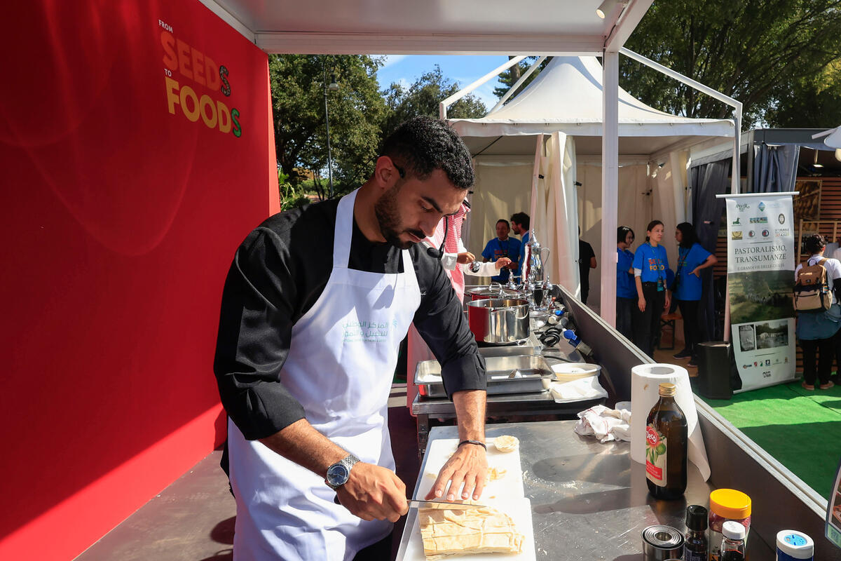 10 October 2025, Rome, Italy. Cooking show with Ammar Albarakati. FAO Global Exhibition: From Seeds to Foods. (Porta Capena Park). World Food Forum (WFF) 2025. The fifth edition of the World Food Forum (WFF), the largest annual gathering of agrifood systems stakeholders globally, runs at FAO headquarters in Rome from 10 to 17 October 2025.
