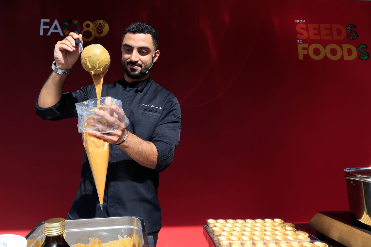 10 October 2025, Rome, Italy. Cooking show with Ammar Albarakati. FAO Global Exhibition: From Seeds to Foods. (Porta Capena Park). World Food Forum (WFF) 2025. The fifth edition of the World Food Forum (WFF), the largest annual gathering of agrifood systems stakeholders globally, runs at FAO headquarters in Rome from 10 to 17 October 2025.