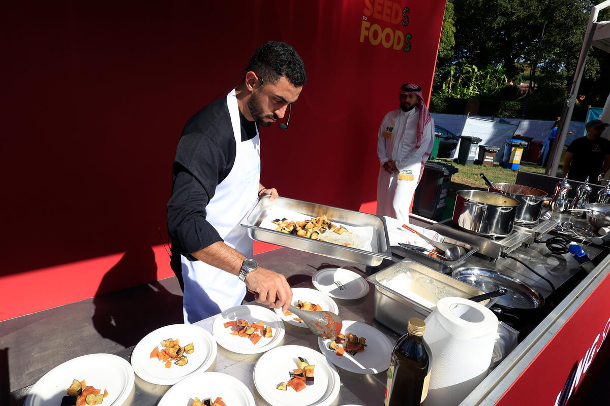 10 October 2025, Rome, Italy. Cooking show with Ammar Albarakati. FAO Global Exhibition: From Seeds to Foods. (Porta Capena Park). World Food Forum (WFF) 2025. The fifth edition of the World Food Forum (WFF), the largest annual gathering of agrifood systems stakeholders globally, runs at FAO headquarters in Rome from 10 to 17 October 2025.